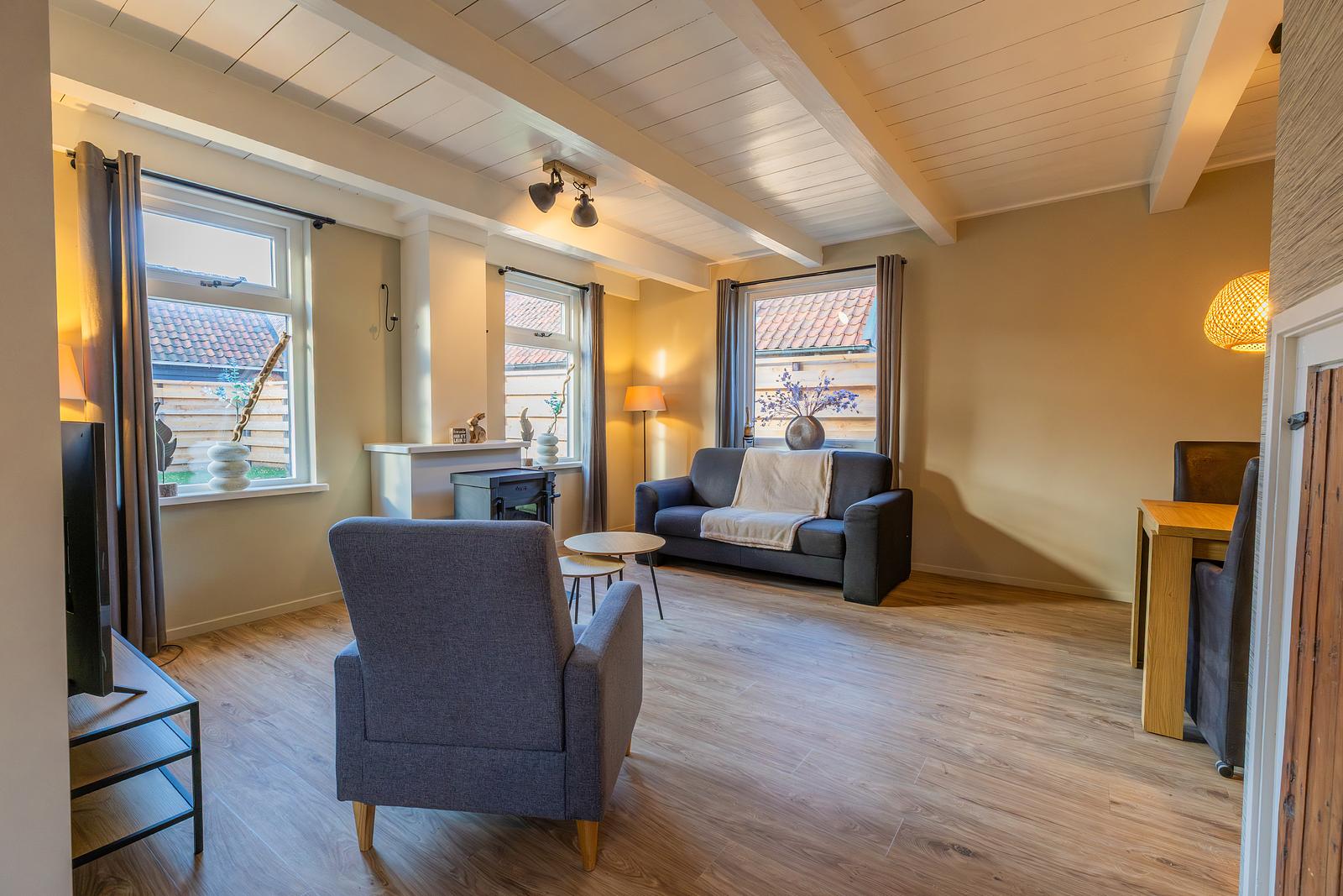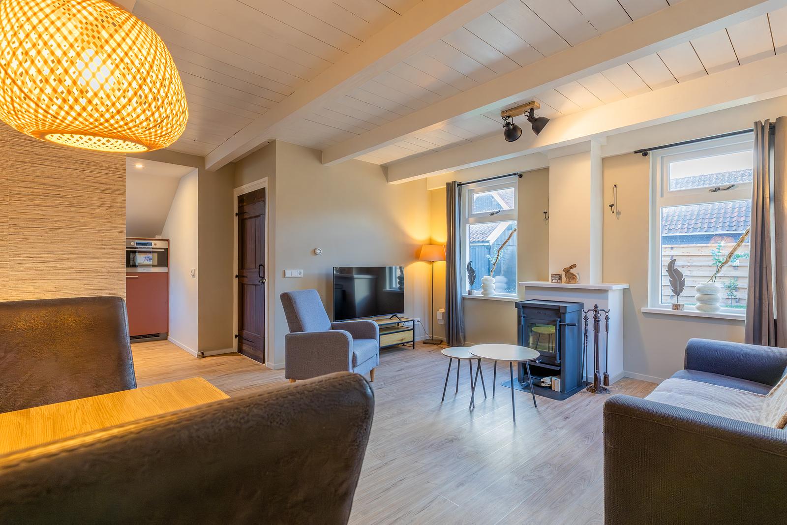 Stijlvol en nieuw (2019) vakantiehuis voor 4 personen in het dorp Hollum op het eiland Ameland, met omheinde zonnige tuin, vloerverwarming en uitzicht over landerijen — ideaal voor een ontspannen verblijf aan zee.